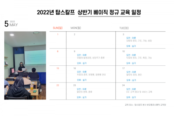 2022년 탑스칼프 상반기 베이직 정규 교육은 4주동안 진행될 예정이며 일정을 다음과 같이 안내해 드립니다.